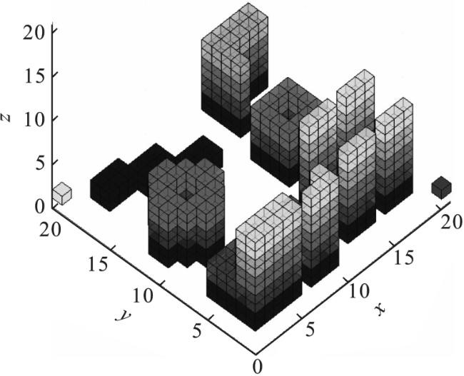 以校园巡视无人直升机(unmanned autonomous helicopter,UAH)为例,针对无人直升机低空飞行过程中三维航迹规划的问题,提出了一种基于蚁群优化(ant colony optimization,ACO)算法的三维多层次航迹规划算法。首先,根据环境和UAH自身性能特点的约束条件对校园环境进行三维栅格建模,并对静态障碍物的分布情况进行高度分层,分层建立二维栅格地图。然后,采用改进信息素更新机制的ACO算法进行二维航迹规划。当无人直升机前方遇到静态或动态障碍物时,利用其垂直起降的特点实现高度层的变换。在新的高度层中再利用蚁群优化算法重新规划航迹,最终实现无人直升机低空飞行任务的三维航迹规划。仿真实验结果表明,改进信息素更新机制的ACO三维航迹规划算法能较好地实现无人直升机在低空飞行时的三维航迹规划。