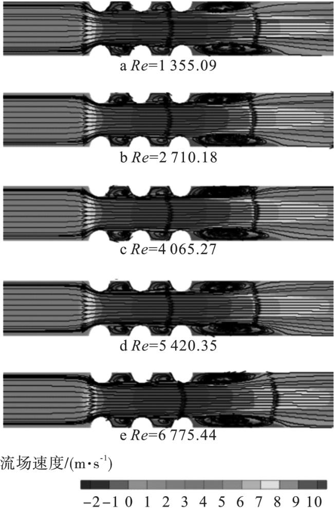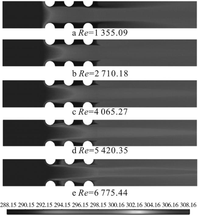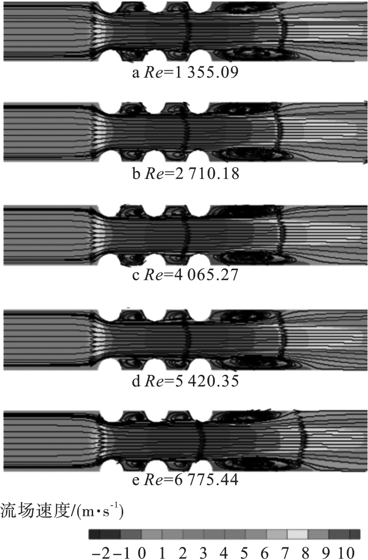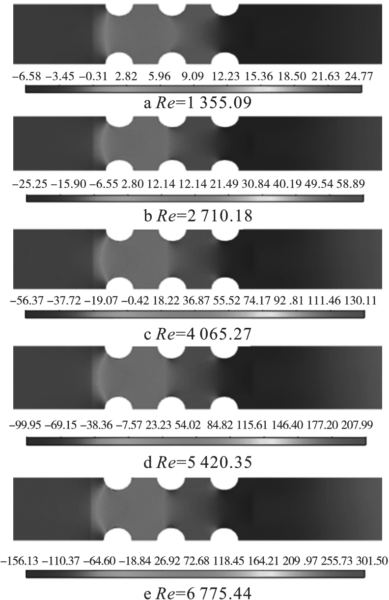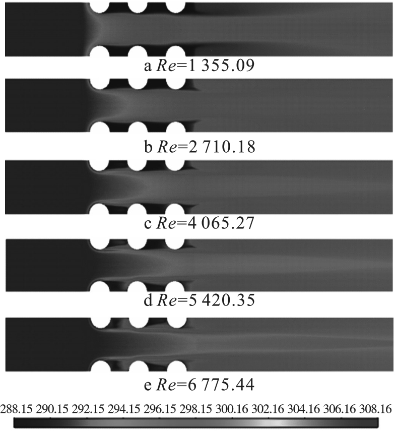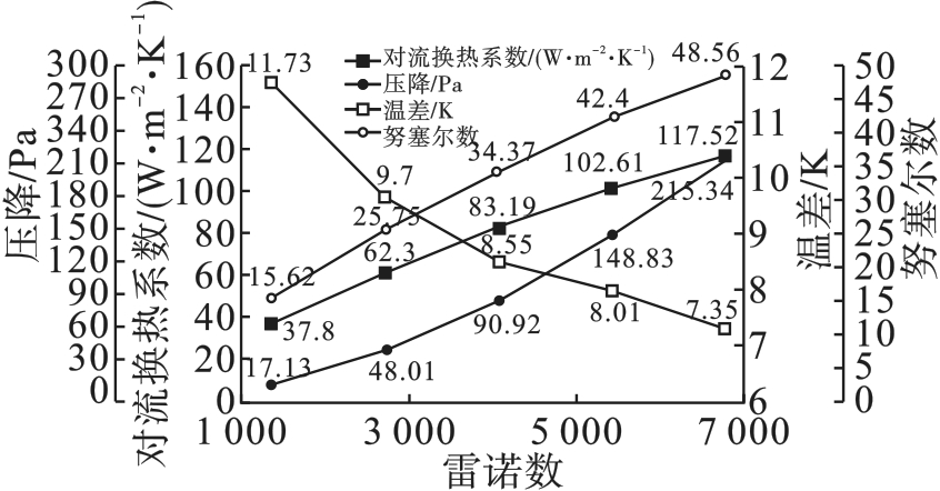 表7 不同雷诺数下的出口速度、对流换热系数、出入口压降、温差和努塞尔数 |