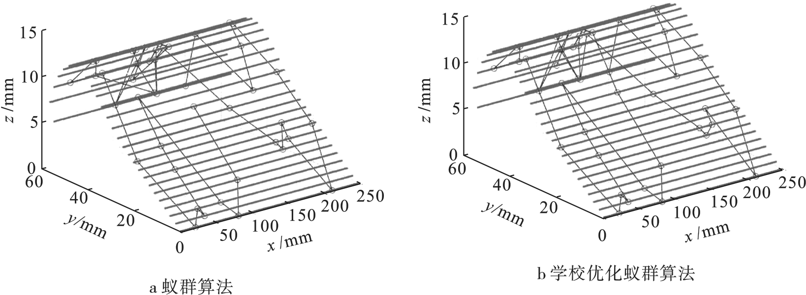 Automatic drilling technology plays an important role in modern aircraft manufacturing. To improve the efficiency and reduce the cost of aircraft assembly and manufacturing,a hole path planning algorithm of aircraft curved surface components was studied in depth. Based on the situation that the traditional ant colony algorithm was easy to fall into local optimum and converge slowly,the new school-based optimization algorithm combined with the traditional ant colony optimization algorithm was proposed to achieve the optimization of the drilling path of aircraft curved surface components. The simulation results show that the improved school-based optimization ant colony algorithm is superior to the traditional ant colony algorithms in terms of drilling path length and iteration speed.