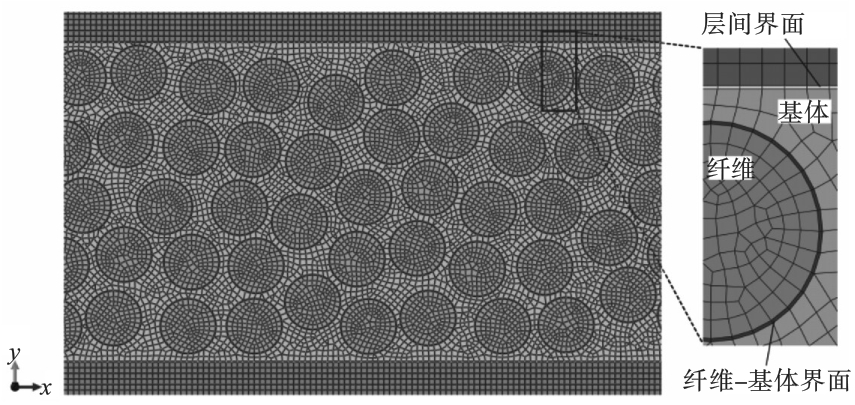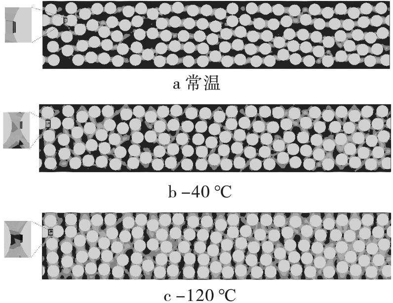 [5],此方法考虑热载荷-机械载荷耦合,能够很好地研究低温状态下复合材料力学性能和预测结构微裂纹起始与演化规律。单纤维RVE