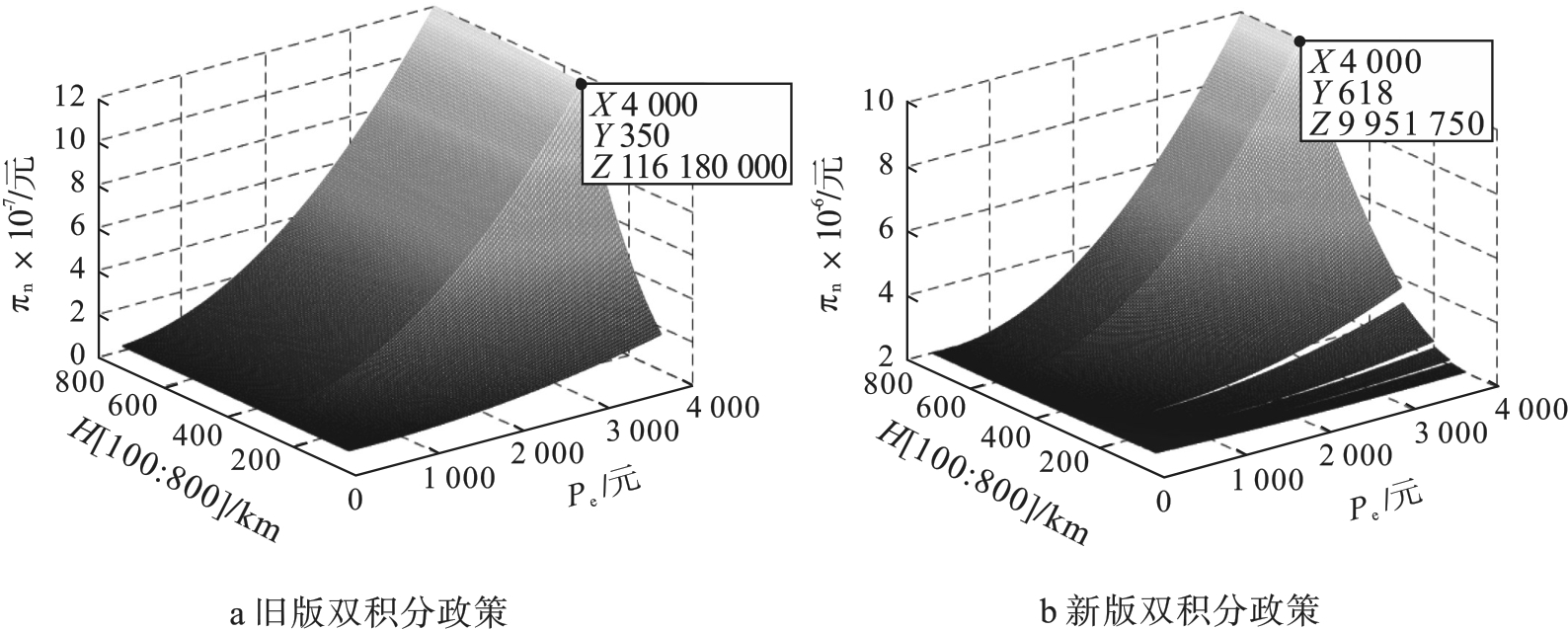 基于此,本文贡献在于:1)结合新版双积分政策单车积分计算方法,将续驶里程调整系数、能量密度调整系数和电耗调整系数等纳入模型,使研究问题更加贴合实际情况;2)研究新版双积分政策带来的影响,通过仿真实验比较新旧版双积分政策,讨论了新版双积分政策的有效性以及政策更迭对企业行为的潜在影响。
