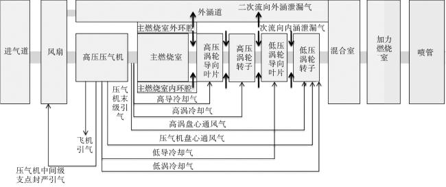 [8-9]。因此,随着二次流系统对发动机总体性能的影响愈发显著,未充分考虑二次流影响的传统航空发动机总体性能模型的计算精度将会大幅降低,亟需建立充分考虑二次流影响的航空发动机总体性能计算模型建模方法。